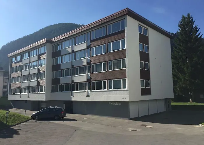 28 m^2 apartmán Studio Riedwiese zahrnuje 1 ložnic a může ubytovat až 2 lidí. Apartmán se nachází 5 minut chůze od Kongresové centrum Davos a 10 minut chůze od Golfový klub v Davosu.